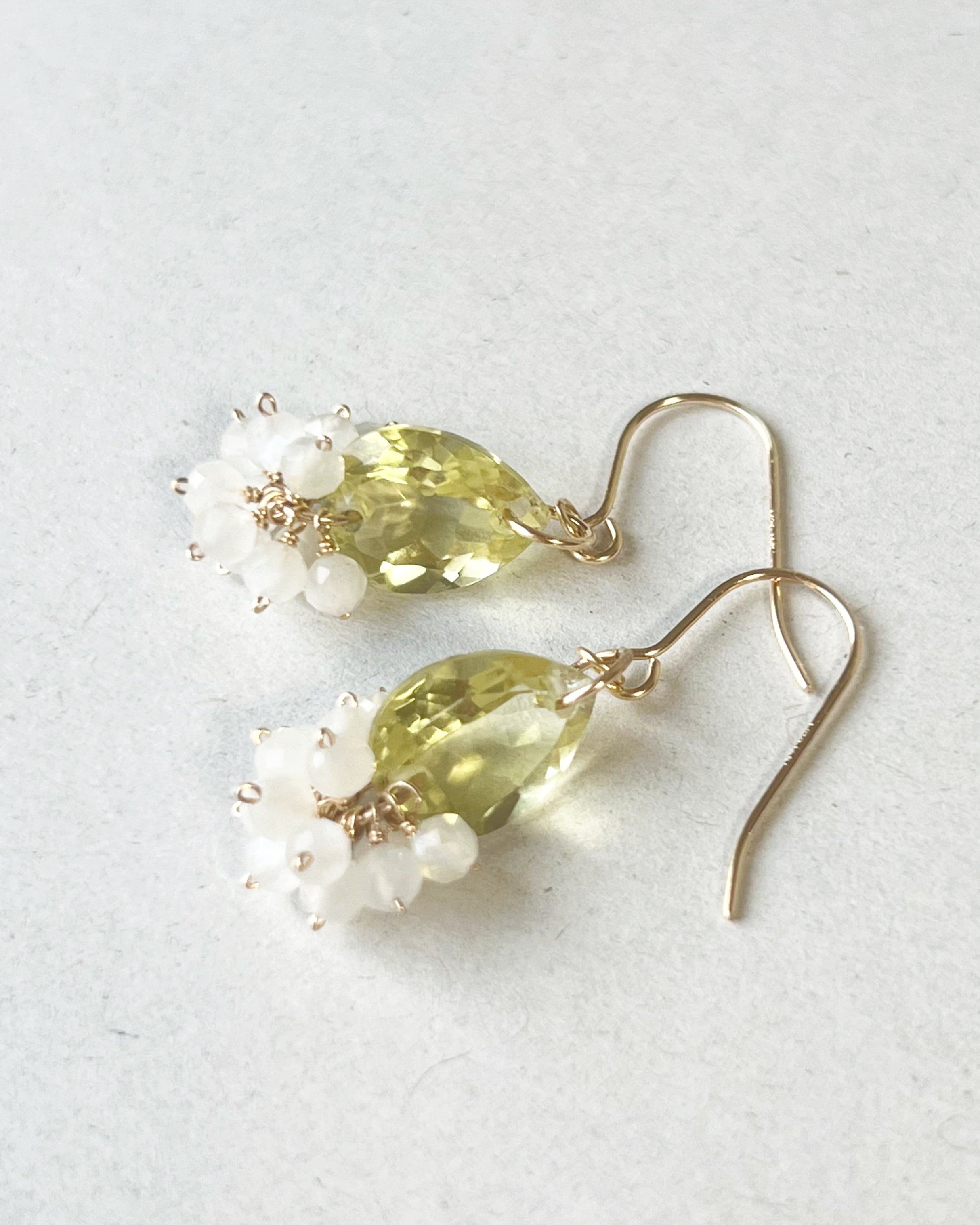 小粒のホワイトムーンストーンは乳白色の輝きが美しく柔らかい印象です。