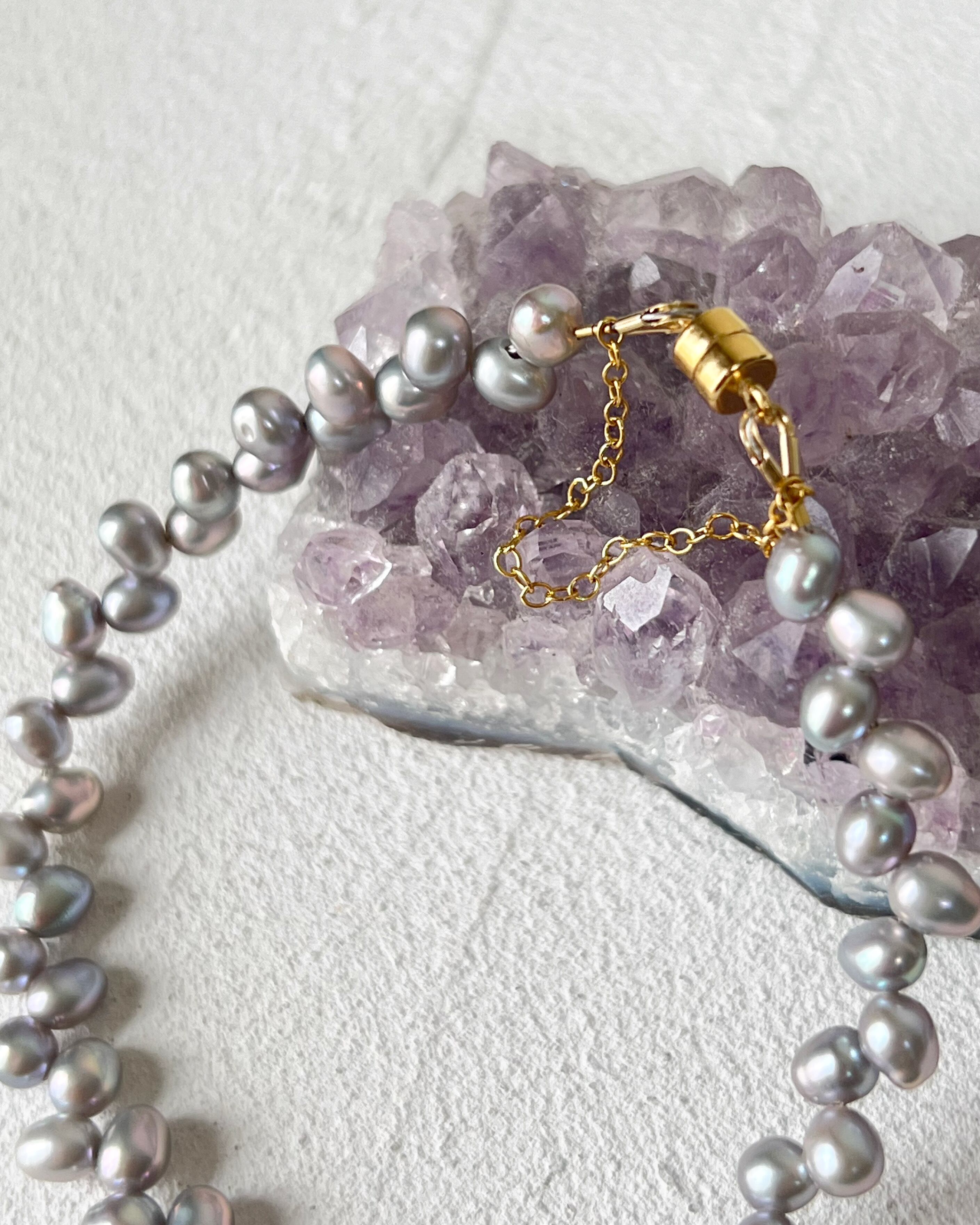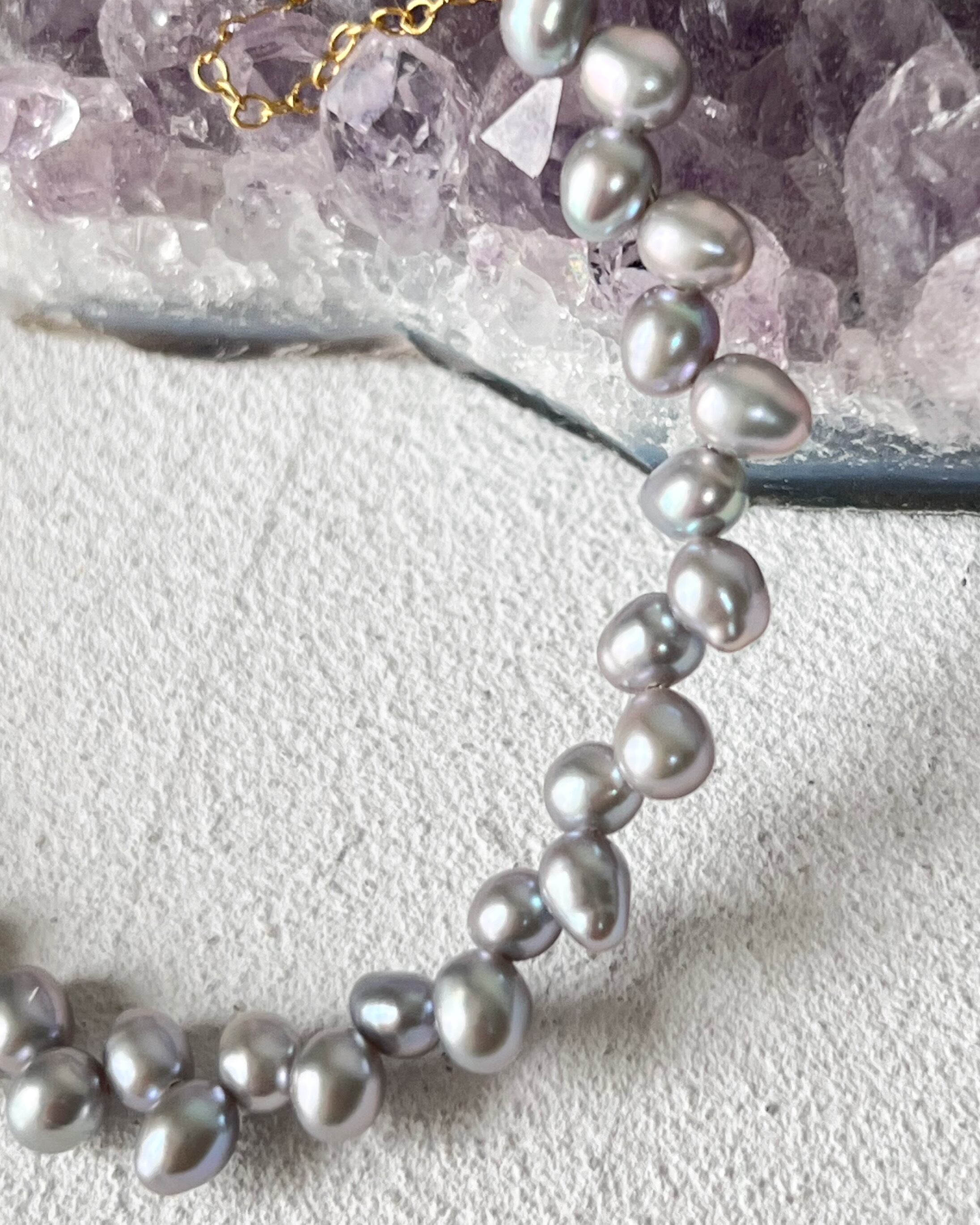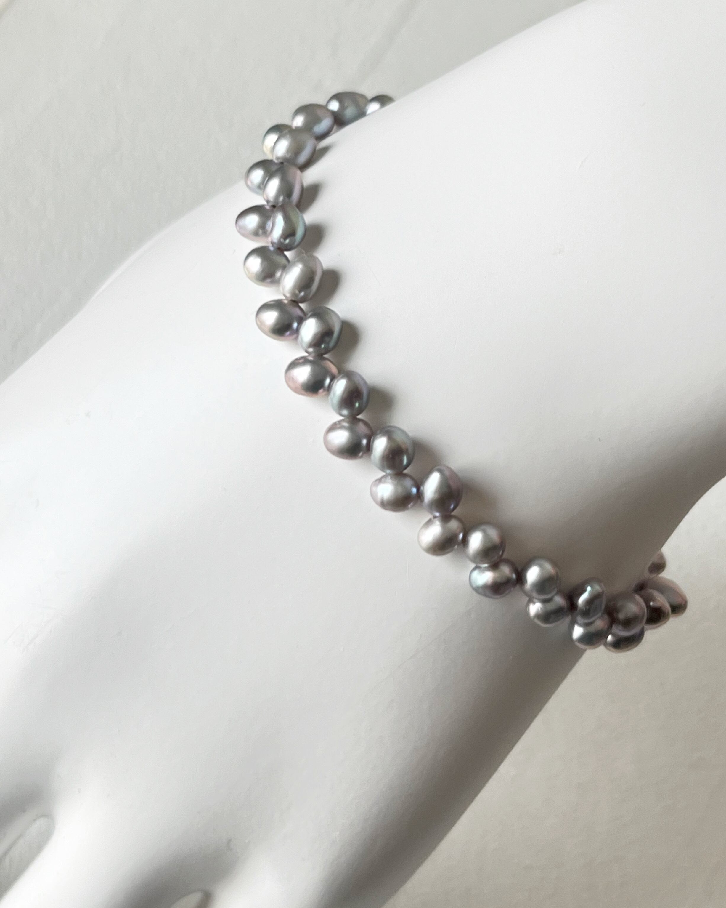 グレーカラーの淡水パールを使用したシンプルなブレスレットです。