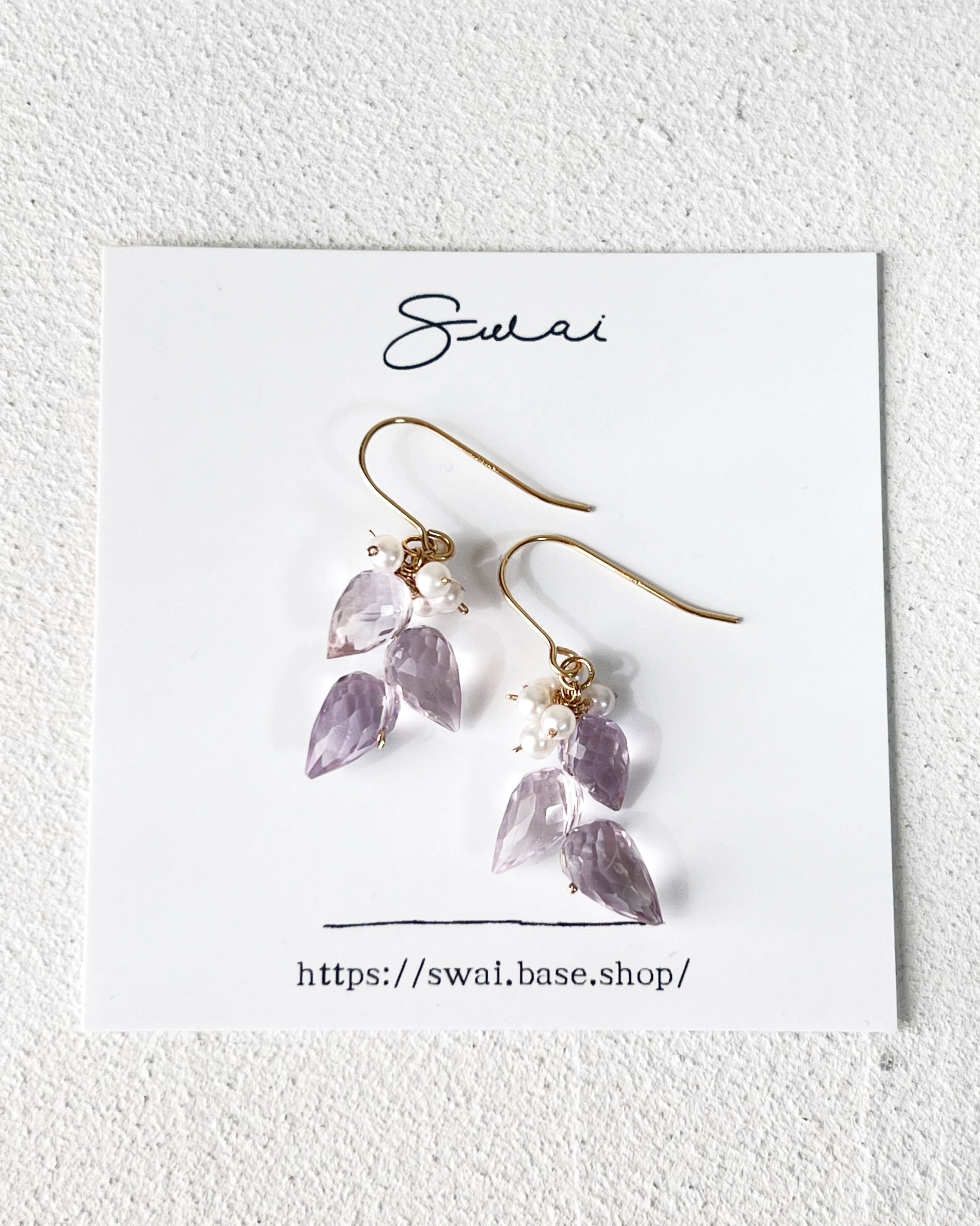 ピンクアメジスト×淡水パールピアス