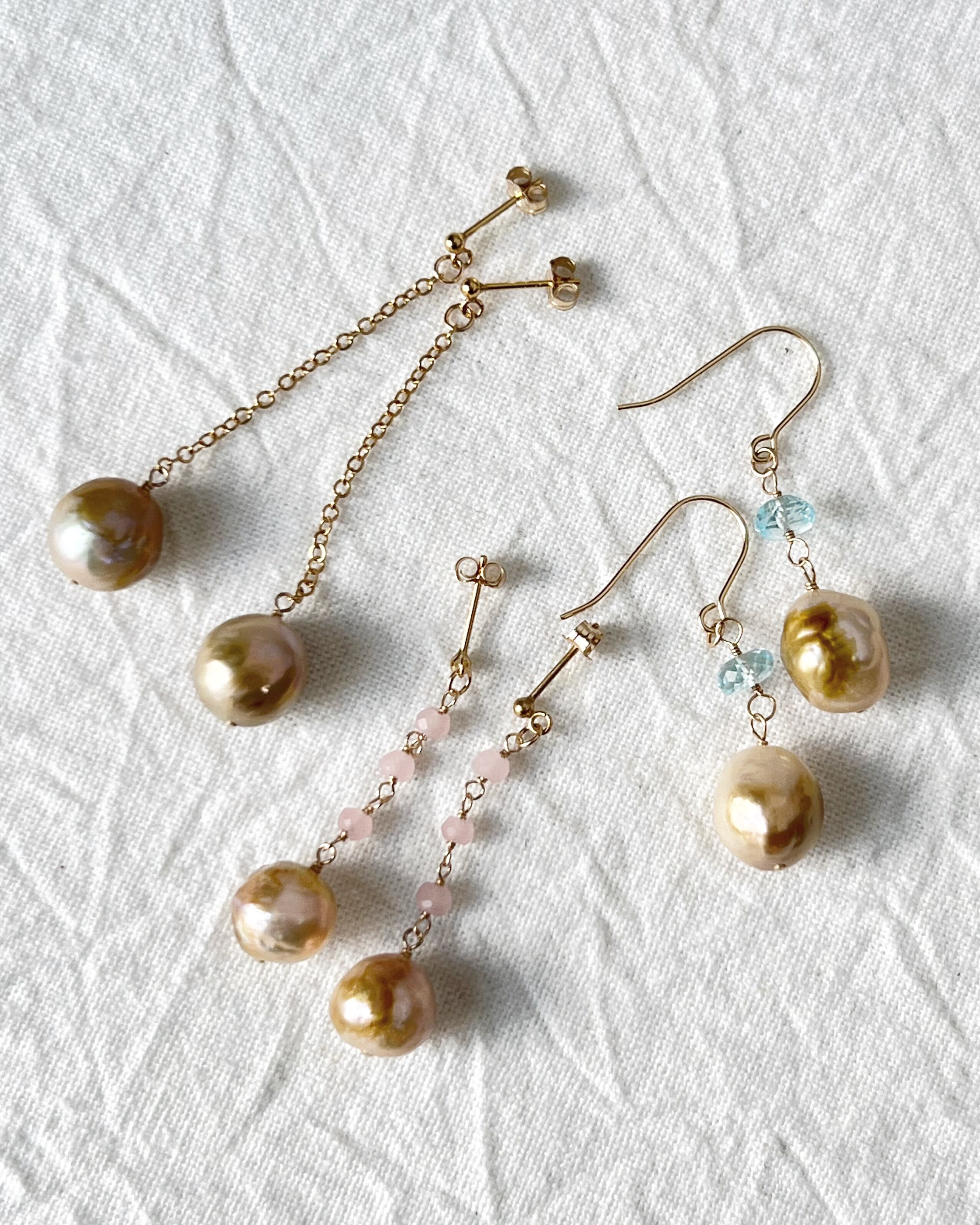 ゴールド〜ベージュの一言で何色と言えない見える角度によって表情を変えるニュアンス豊かなバロックパールです。
