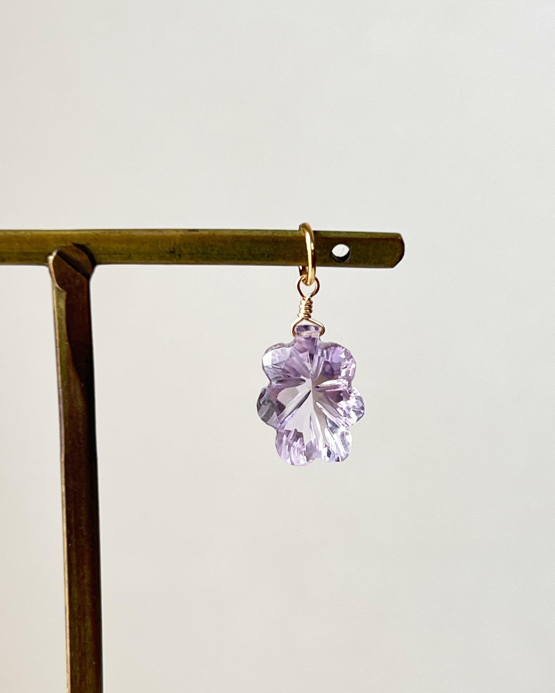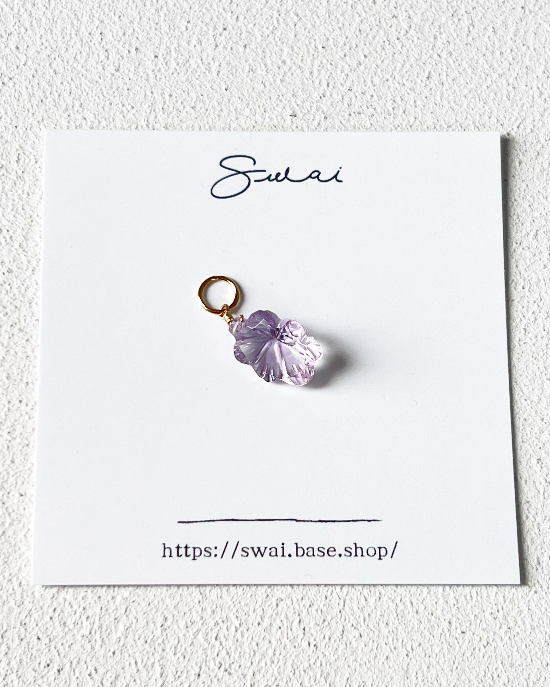 透明度が高く繊細なカットが光を受けてキラキラに輝くピンクアメジストのback carvingのペンダントトップです。