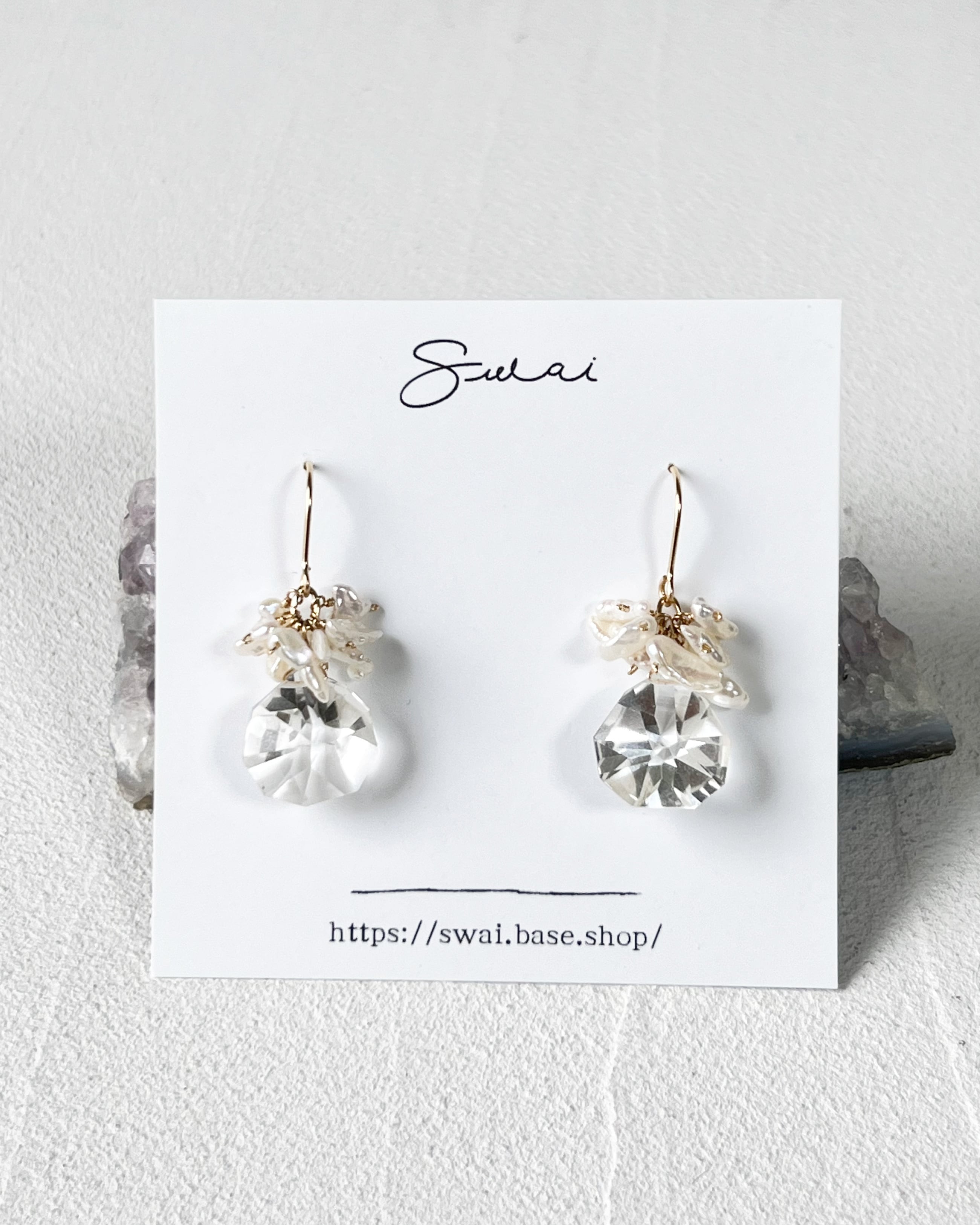 水晶×淡水パールピアス