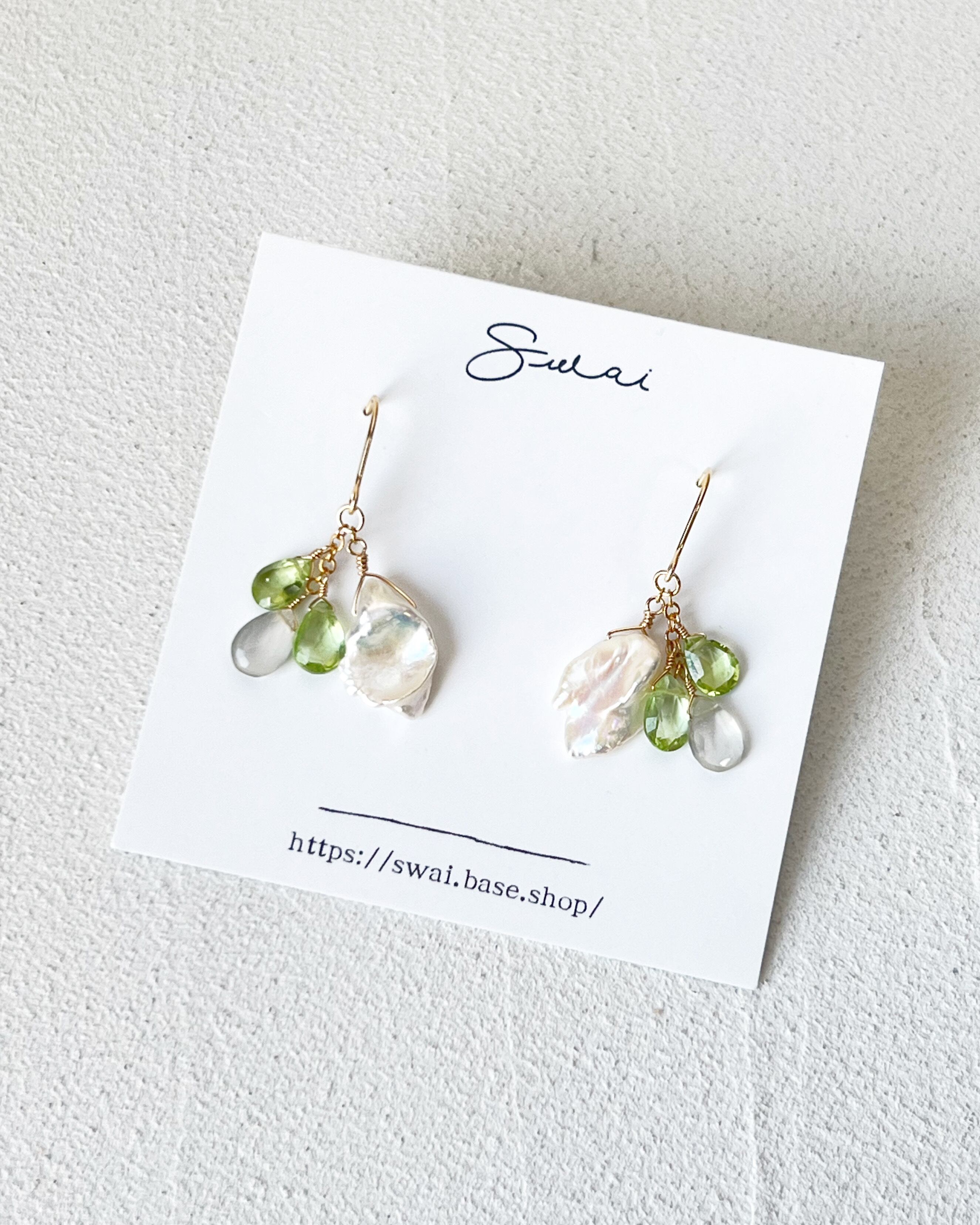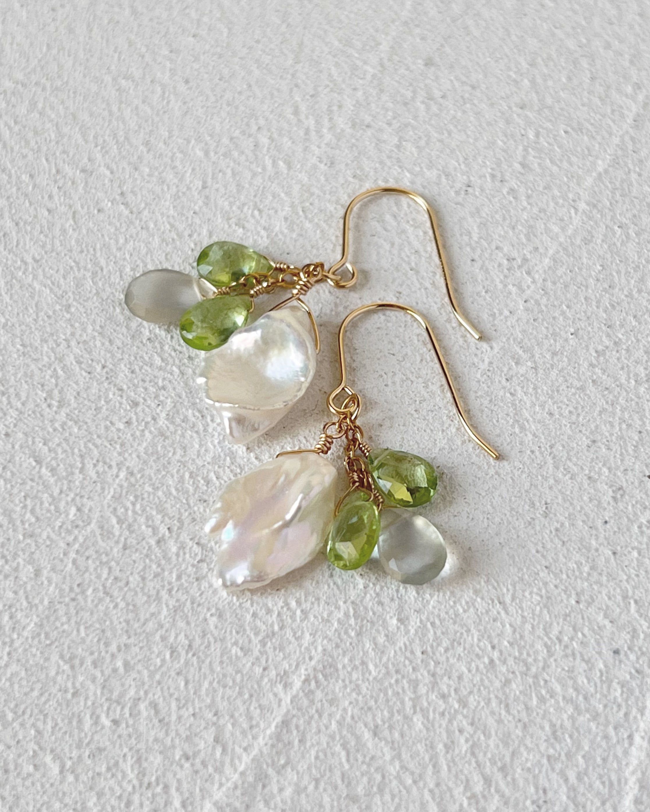 淡水パール×ペリドット×セイロンムーンストーンピアス
