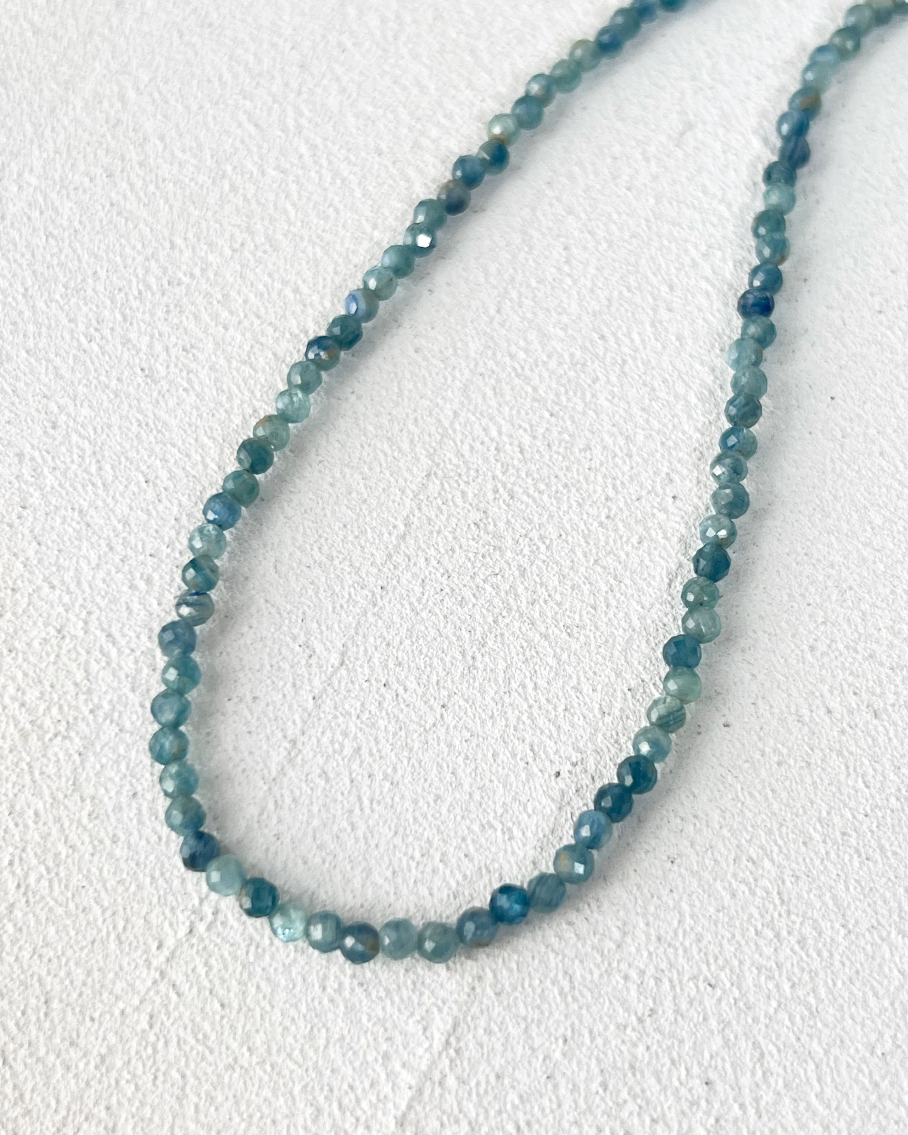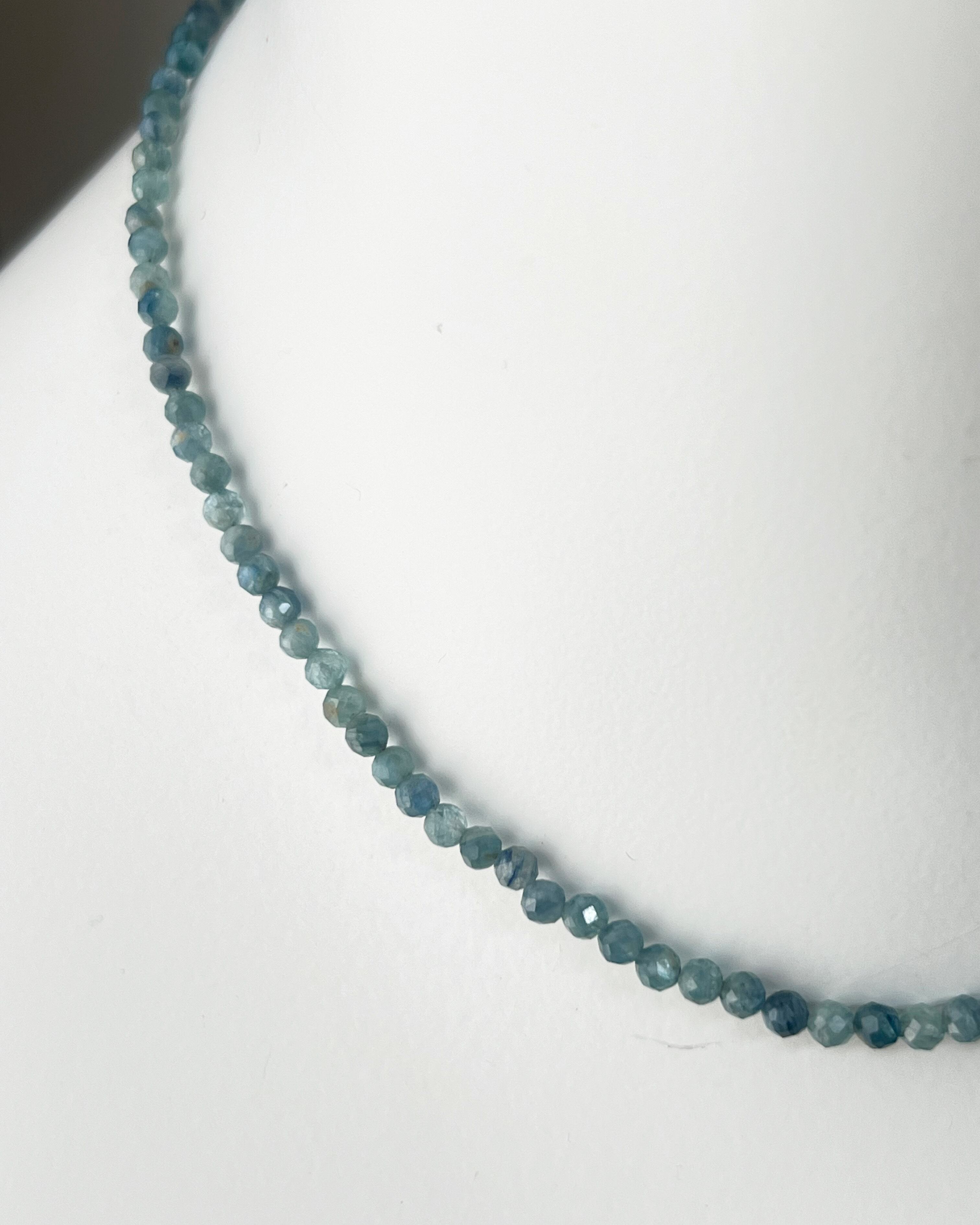 アクアブルーの色の濃淡や内包物の表情も魅力なカイヤナイトのショートネックレスです。